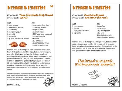 The Whole Famn Damily is also spiral-bound so even more additions can be included. There is a handy vinyl pocket in the front of each section for those clipped or printed-from-the-internet recipes we don't have time to properly insert. Plus, the binder has its own pockets, front and back, for even more stuff!!