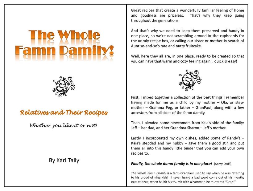 The Whole Famn Damily is a term GranPaul (my father) used to say when he was referring to his brood of nine kids! I never heard a bad word come out of his mouth; except once, when he hit his thumb with a hammer and muttered “Crap!”
